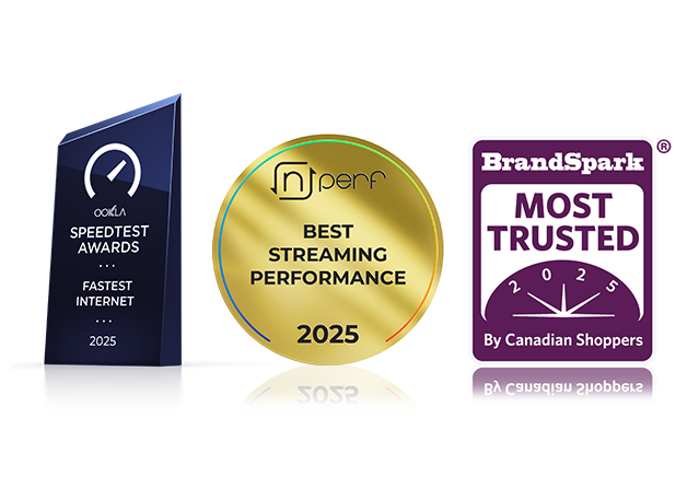 For the third year in a row, Bell Pure Fibre Internet has been awarded fastest Internet in CanadaFootnote 1 based on Ookla® Speedtest Intelligence® data. This combined with nPerf’s award for Bell Internet as Number 1 on Streaming Performance, winning Brandspark’s most trusted ISPFootnote 2, makes Bell Canada’s most awarded Internet service provider.